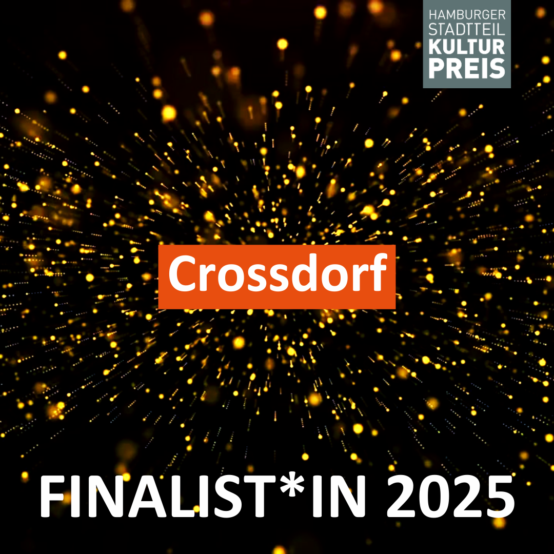 Crossdorf war Finalist des Hamburger Stadtteilkulturpreises 2024! Wir danken Allen, die für uns abgestimmt haben. Den Preis haben wir leider nicht gewonnen, aber wir gratulieren den Gewinnern: „Female* Voices – Was uns zum Leuchten bringt“.